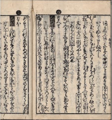 平仮名以下各種の文字とその読みを掲げ、訓の区別を示した語学書で、これまであまり大きく取り上げられることはなかったが、なかなか興味深い記述もある。各種の文字を掲出した箇所に片仮名の起源を白抜きで示したり、和蘭(ヲランダ)文字が空欄ととなっていて、「和蘭ノ文字障有テ削之」と説明する。本文中のアルファベットも削られており、出版史上のおもしろい例であろう。